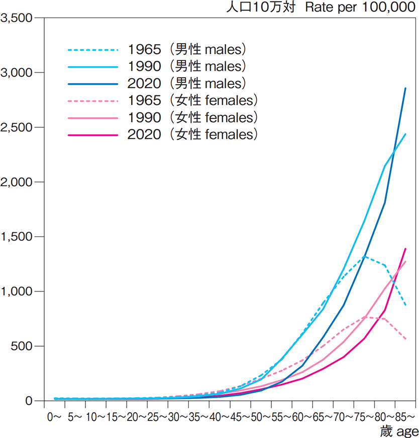 病気の中でもがん(悪性新生物)は特化されて保障されています。なぜなら、日本人の死因のうち、トップの死因ががんであるためです。がん団信を例に加入するかどうかの考え方について解説します。まず、がん罹患率の推移グラフを見てみましょう。