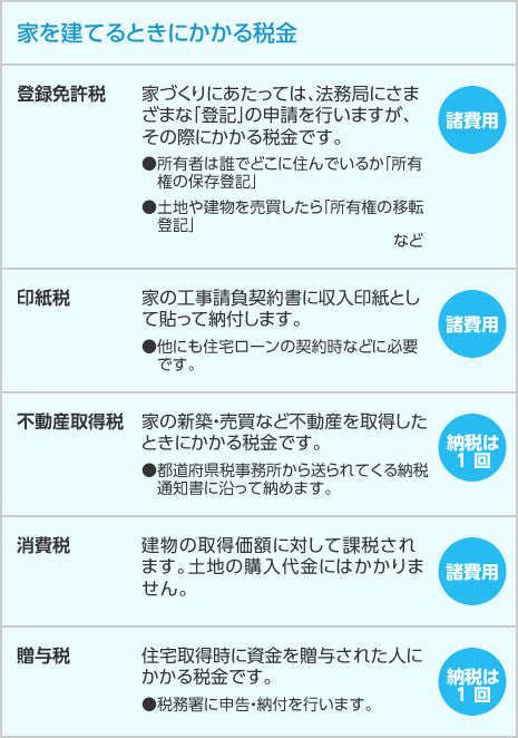 家づくりの費用で忘れてはならないのが稅金です。大きく分けて「家を建てるとき」と「入居後もずっと」払う稅金があります。