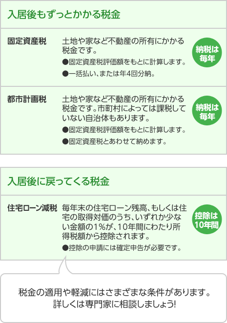 住宅ローン控除や特例など、稅金が戻ってきたり安くなる制度もありますので上手に活用してください。