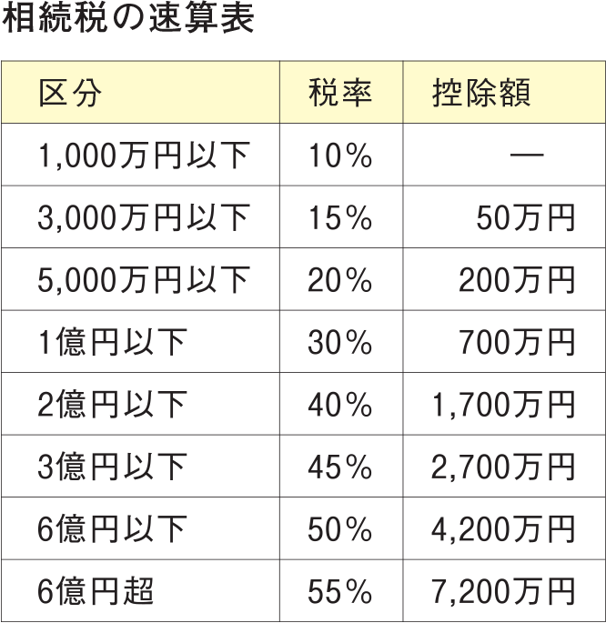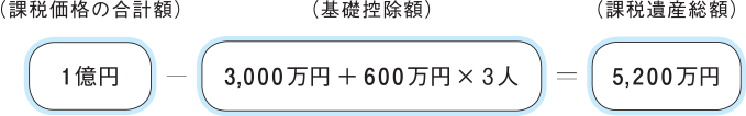 実際の相続稅は、この合計額から「基礎控除額(3,000萬円+600萬円×法定相続人※1の數)」を引いたものが対象となる遺産(課稅遺産総額)となります。ここで、課稅価格の合計額が基礎控除額より低額であれば、相続稅がかからないことになります。