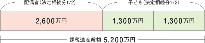 法定相続人が配偶者と子どもの場合は、配偶者は1/2、子どもは殘りの1/2を均等に分ける。