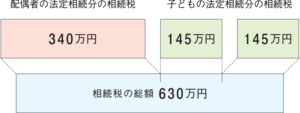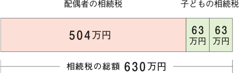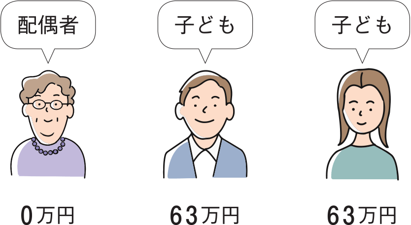 あん分した稅額から各種の稅額控除の額を差し引いた後の金額を納稅。配偶者は「配偶者の稅額軽減※3」の特例により、納める稅金は0円。子どもは各63萬円ずつ納稅する。