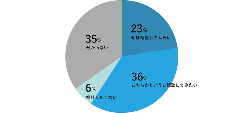 例えば土地探しについて、専門家に無料で相談できるサービスがあれば利用したいか、意向を聞いたところ、「ぜひ相談してみたい」(23%)「どちらかというと相談してみたい」(37%)を合わせると60%の方が利用したいと回答。