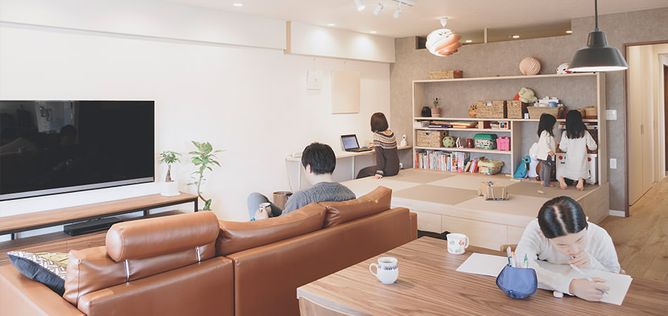 以前はリビングといえば、一般には家族みんなでテレビを観る場所でした。しかし、スマートフォンやタブレットなどIT製品が進化し、身近なアイテムになるにつれて、家族がべったりと一緒にいて同じことをするのではなく、家族の気配を感じながらもそれぞれが自分の時間を大切にしたいと思うようになりました。そのため、リビングは団らんの場所であるとともに、一人ひとりが思い思いに過ごせる空間へと変化してきています。こうした傾向から、2010年以降、パブリックスペースであるLDK內にタタミコーナー、書斎コーナー、あるいはカウチスペースやタイルフロアのインナーテラスなど、別空間的な場を設けた住まいが増えてきました。これからはLDKと個室の間にこうした「バッファゾーン」を挾み、家族と緩やかにつながりつつ、個のライフスタイルを豊かに楽しむスタイルが多くなっていくのではないでしょうか。
