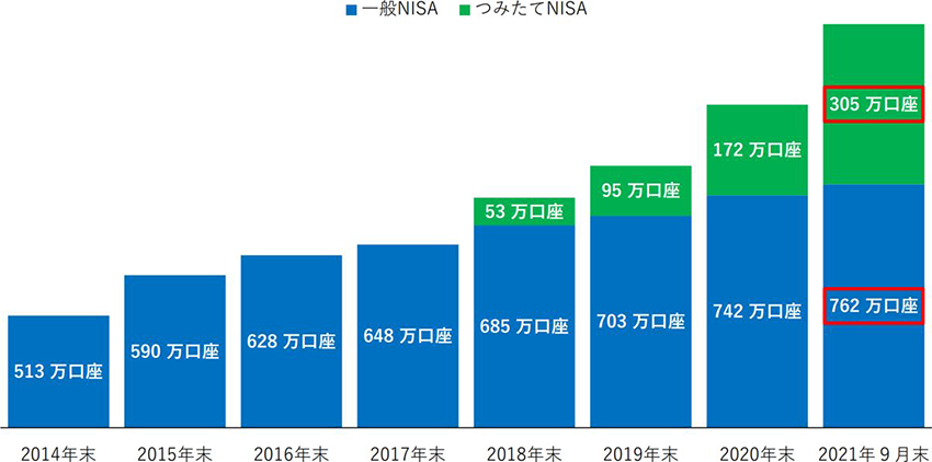 出典:NISA口座開設?利用狀況調査結果(2021年9月30日現在)(日本証券業協會)