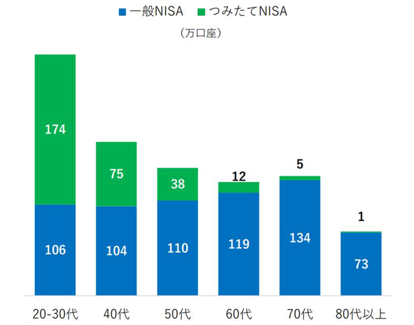 年代別NISA(一般?つみたて)口座數