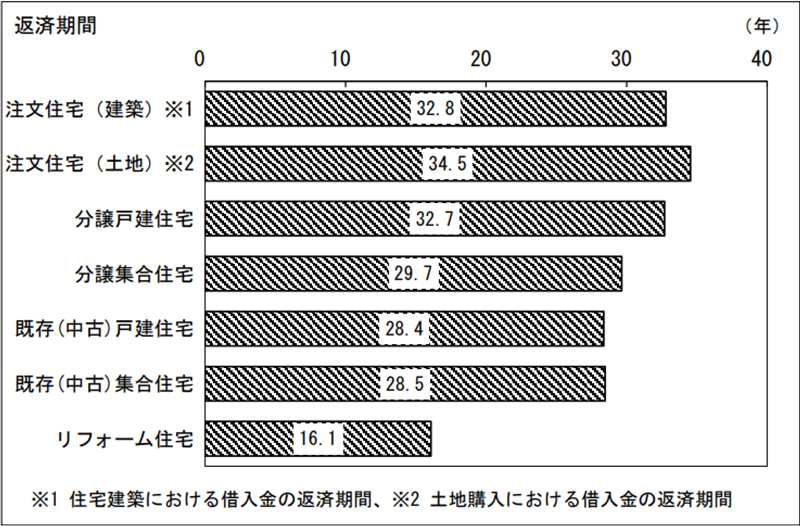 多くの方が住まいを購入するために住宅ローンを組みますが、その返済期間はどのくらいになるのでしょうか。國土交通省住宅局の令和4年度住宅市場動向調査によると住宅ローンの返済期間は30年が一つの目安となっています。