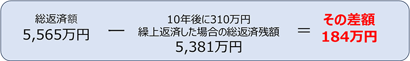 10年後に311萬円の繰上返済で最終的な総返済額は184萬円減額となりました。