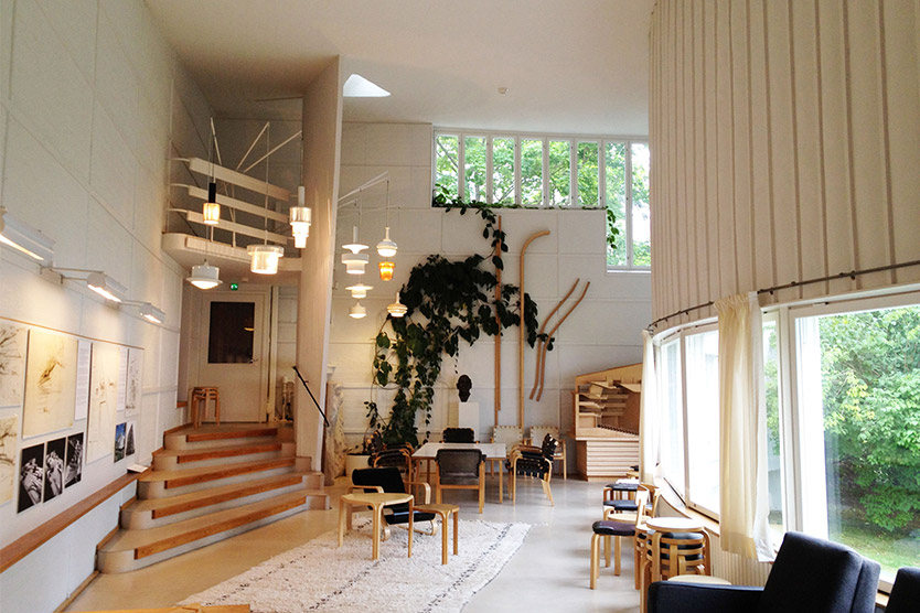 アアルトのデザイン哲學が反映された自邸。冬季の少ない光を取り込めるよう、自然光を取り入れた設計で、庭との一體感も重視されている。