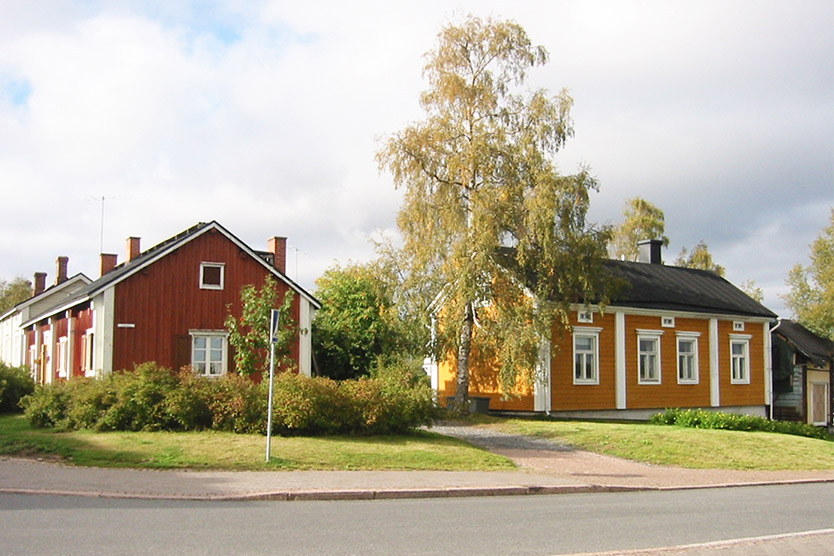では、一般的な住宅はどうでしょうか。フィンランドの都市部には集合住宅が多く、郊外ではほとんどが戸建住宅です。外壁には赤茶やグレー、ブルーなどの「アースカラー」の塗料が塗られ、木造をメインに、レンガなどをあしらった家もあります。國土の約8割は森で、すぐそばに広がる自然に溶け込むよう、建物の色、高さやデザインを行政がコントロールしているため、美しい景観が維持されています。