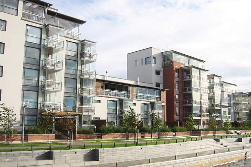都市部でも多くの緑がそこかしこに存在しています。フィンランドの集合住宅では近年、「ガラスバルコニー」がトレンドです。バルコニーをガラスで囲った造りで気密性はそれほど高くありませんが、椅子やテーブルを置いて第二のリビングとして使います。室內にいながら貴重な日差しを取り入れる、住まいの工夫です。