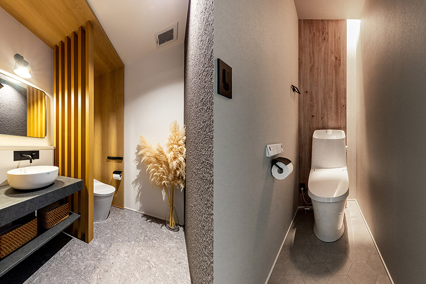 それよりも、それぞれのこだわりが詰まったスペースを検討するのはいかがでしょうか。例えば、美容意識が高い方は洗練された洗面スペースを、洋服が好きな方はアパレルショップのような雰囲気のクローゼットを考えるなど、個人の特性を活かした完成度の高い空間づくりをすることで快適性が高まるとともに、個性豊かな住まいが完成します。なかでも空間が獨立するトイレは世界観をつくり込みやすく、ちょっとした遊び心を加えるのにおすすめのスペースです。個人の価値観を尊重しやすいのが二人暮らしの良さなので、ぜひ二人ならではの住まいを探求していただきたいです。