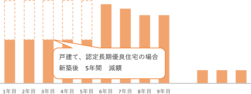 新築住宅に対する減額措置とは、令和6年(2024年)の3月31日までに新築した住宅が、次の床面積要件を満たす場合は、新たに課稅される年度から3年度分(3階建以上の耐火?準耐火建築物は5年度分)に限り、當該住宅にかかる固定資産稅額(ただし、居住部分の床面積50m2以上280m2以下が適用條件)の2分の1が減額される制度です。また、認定長期優良住宅については、次の床面積の要件を満たす場合は、新たに課稅される年度から5年度分(3階建て以上の耐火?準耐火建築物は7年度分)に限り、當該住宅にかかる固定資産稅額(居住部分の床面積50m2以上280m2以下が適用條件)が2分の1減額されます。令和4年(2022年)度の稅制改正により、令和4年(2022年)までだった本制度が2年間延長となりました。なお、この制度について都市計畫稅は対象外です。
