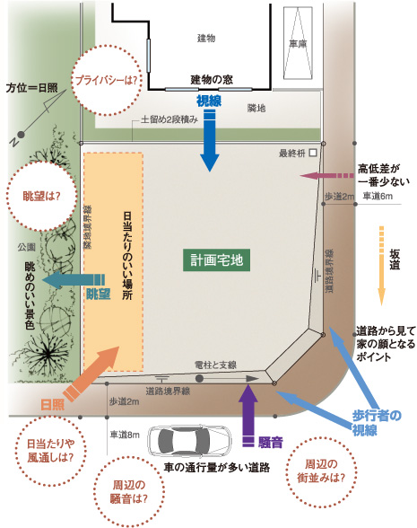 敷地調(diào)査と同時(shí)に、周辺の環(huán)境をじっくり調(diào)査すること。