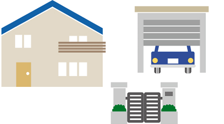 「建物」には門?塀?垣?カーポート(車庫)?物置などのほか、エアコンの室外機?テレビアンテナなど住居に付屬するものも含まれます。庭木やペットなどの動植物は対象外です。