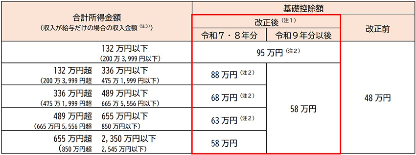 - ※4合計所得金額2,350萬円超の場合の基礎控除額に改正はありません。