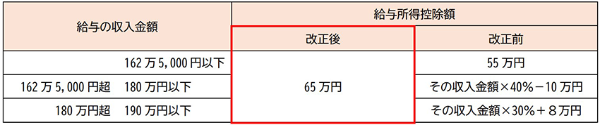 ※給與の収入金額190萬円超の場合の給與所得控除額に改正はありません。