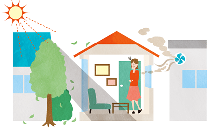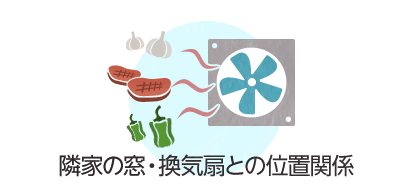 例えば、隣家の料理の匂いがリビングに入らないように、また隣家のトイレの窓が自宅の居室の窓と干渉しないように、工夫したいものです。