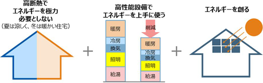 図1:ZEHにおける斷熱性能、省エネ、創(chuàng)エネのイメージ図