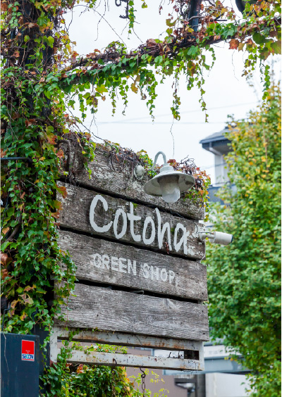 コトハは観葉植物を専門に扱うショップ。元撮影スタジオだった店舗は天井が高く、大きな窓から光が注ぎます。店內には背丈を超える大鉢から、多肉植物やエアープランツまで多彩なグリーンがそろっています。