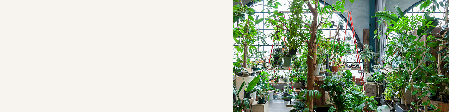 生命力にあふれたグリーンがそろう店內。わが家に招き入れたいものをじっくり選ぼう。奧に鉢のコーナーもあり、グリーンに合わせて好きな鉢を購入することもできる。