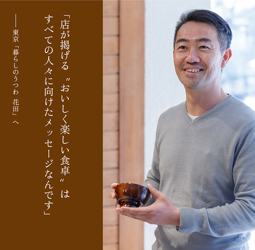「みそ汁は取っ手の付いた椀のようなものではなく、できるなら持って飲みたいし、漆器で飲みたいですよね」と店主の松井英輔さん。
