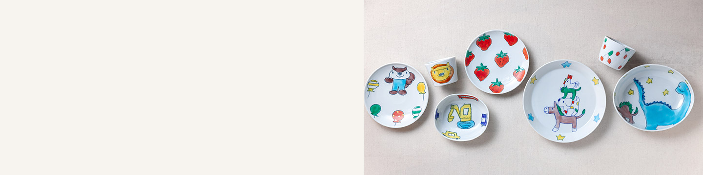 子ども用のうつわの特徴は、見込み部分に絵が多いこと。「最後まで食べたら、ごほうびで絵が現(xiàn)れる。だからごはんを殘さないようになる。殘さないで食べましたっていうゴールみたいなものですね」。小さなうさぎが1匹だったり、2匹だったり、消防車と一緒だったり…。少しずつ違っていて選ぶときもワクワクします。