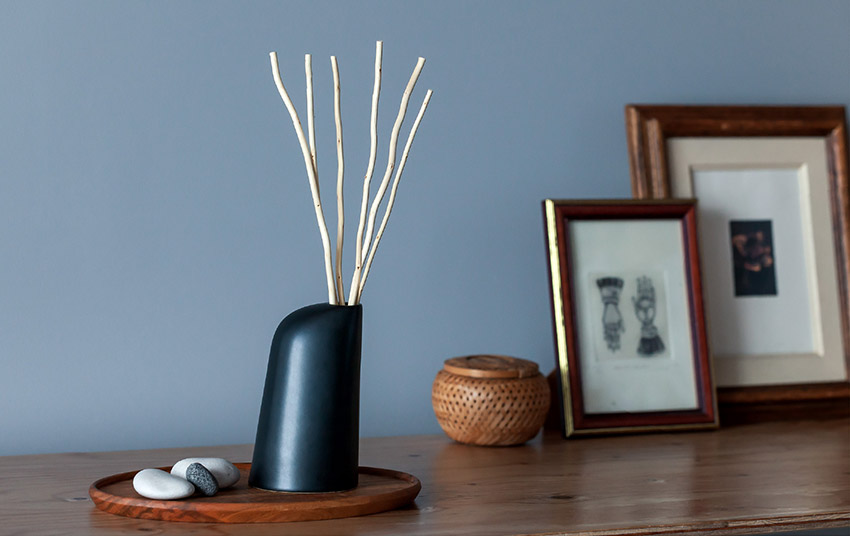 「リビングで香りを上手に広げるには、空気の動きがある場所に置くのがポイントです」。たとえば窓辺やドアの近く、人の動線スペースなどがおすすめだそう。また、風上から風下へ、香りは風に乗ってゆっくり漂うので、冷暖房など空調にも配慮して置き場所を見つけましょう。