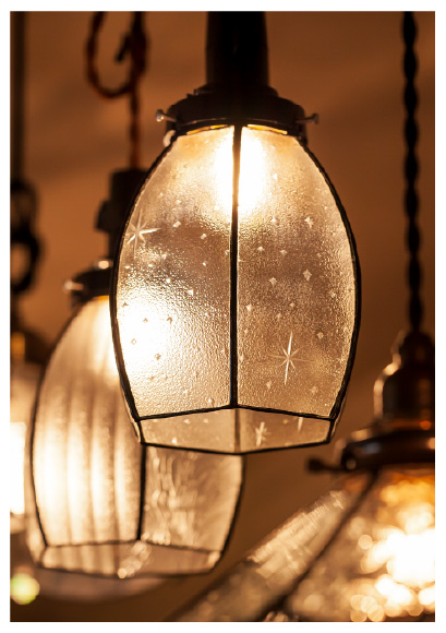 海外輸入ガラス「フローラ」を使ったランプシェードも。
