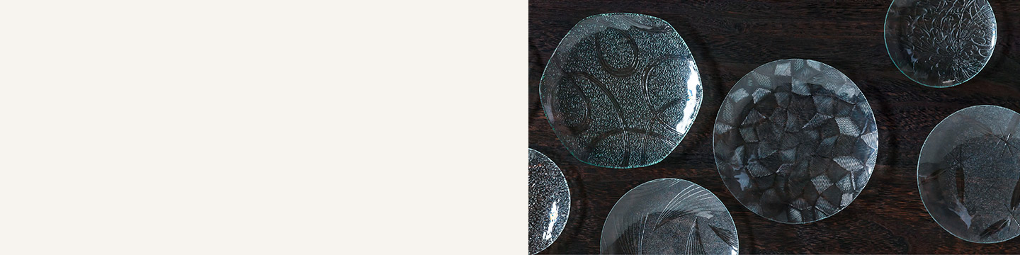 2002年に脫サラして家業を継いだ古舘さんは、新しい分野に挑戦しようとステンドグラスの修業を積み、技術を會得。殘された昭和型板ガラスでランプシェードをつくることを思い立ちます。その後、熱を加えれば皿にできると思いつき、試行錯誤の末に商品化。それがコロナ禍に人々の目にとまり、一躍人気商品となりました。