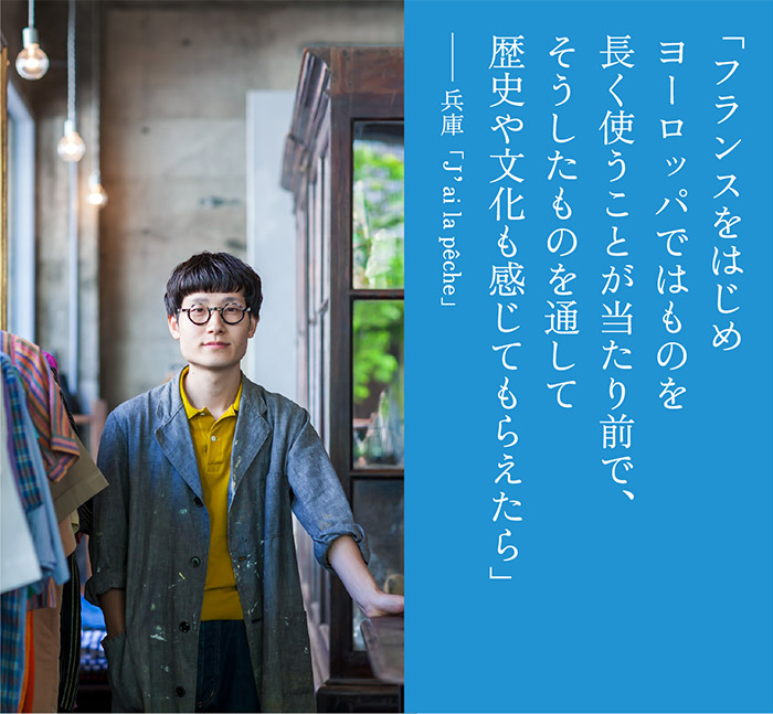 「フランスをはじめ、ヨーロッパ各地で自分たちで買い付けたものを置いています。現地の洋服や雑貨を実際に手に取っていただいて、その國だったり、歴史や文化だったりを、ものを通して知っていただけたら」とスタッフの細川裕生さん。
