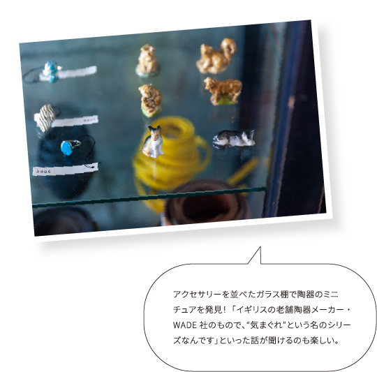 ビンテージに慣れていない方は、何か一つ雑貨を選んでみては?と提案する細川さん。選んでみたものが引き立つように、少しずつ周りも変えていくことで好きなビンテージがわかってくる、とも。