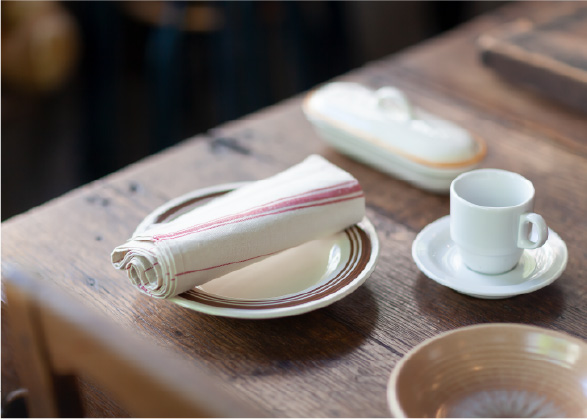 「陶器はフランス以外にイタリア、ベルギー、ドイツ、ポルトガルなどから。特殊なものというよりは、取り入れやすいものを選んでいます。上質のもの、基本的にきちんと刻印のあるものを探します」