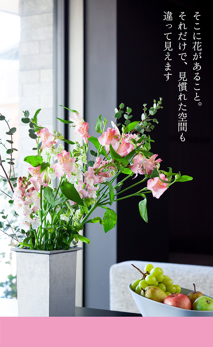 たとえば、家族が日々集う食卓。花を飾れば、家族団らんの時(shí)間もぐんと華やいだムードに包まれます。花をきっかけに、いつも以上に會(huì)話が弾むかもしれません。