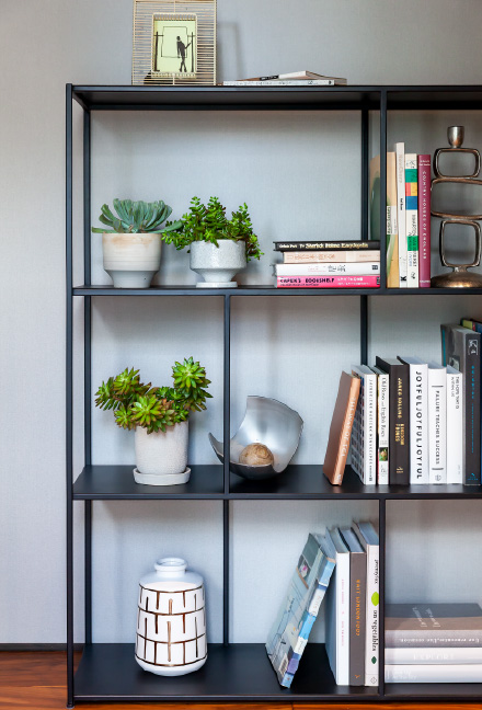 ここでは花の代わりに多肉植物を用いてみました。お?dú)荬巳毪辘伪兢纫痪wにオブジェのように飾って、見せる本棚を楽しんでみましょう。