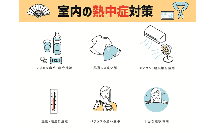 デスクワーク中やくつろいでいるとき、就寢中など、室內での熱中癥は活発に活動していなくても起こります。対策として、十分な水分補給と適切な室溫?濕度の調整など10のポイントをご紹介します。