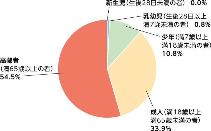 熱中癥になった年齢の割合は多い順に、満65歳以上の高齢者、満18~64歳未満、満7歳~17歳の少年という結果になっています。それぞれのライフスタイルも考慮した熱中癥対策が求められますが、高齢者は自宅で過ごす時間も多いと考えられますし、働き盛りの成人も在宅ワークによる在宅時間が増えているため、室內を含む自宅での熱中癥対策は、年齢に関係なく重要といえるでしょう。