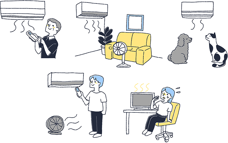 同じ家に住んでいても、部屋ごとに室溫や濕度は違うことがあります。家族が家のどこにいて、どんな狀態なのかを注意しておきましょう。また、犬や貓などは人間より汗をかく部位が少なく、體溫調節が苦手。ペットの様子にも気を配りましょう。