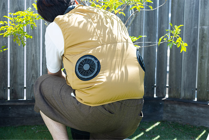 洗濯物を干したり植物に水をやったりと、暑い時間帯に出ることも多いベランダやバルコニー、テラス。室內と同じ格好で出てしまい、作業に熱中している間に熱中癥になるケースも考えられます。まとまった時間で作業するときは、屋外のための服に著替え、こまめな水分補給を忘れないようにしましょう。扇風機(ファン)付きの作業著などがあると便利です。