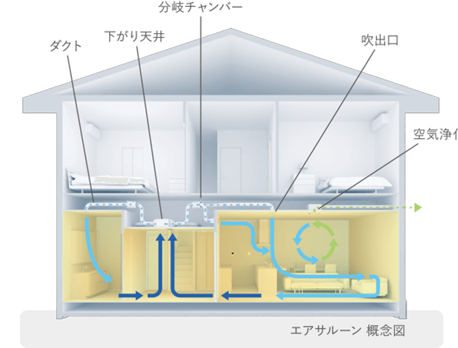 ダイワハウスが提案する「あんしん空気の家」は、家全體の溫度や濕度を均一にコントロールする全館空調システムです。「エアヒーリング」と「エアサルーン」の2タイプがあります。