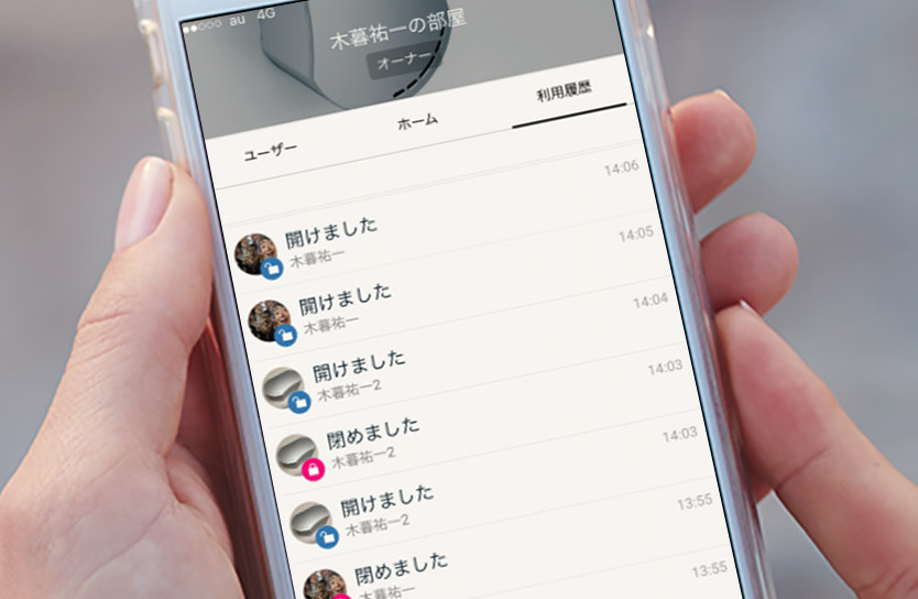 利用シーンが想像つかないという方のためにもう少し丁寧に補(bǔ)足すると、たとえばまだ自分は仕事中にもかかわらず戀人が先に家に到著してしまったといったシチュエーション。こんな時に遠(yuǎn)隔でドアを開錠してあげることができます。あるいは、期間や時間を限定した鍵を、必要とする人に送信してあげるといった使い方もあると思います。たとえば今話題の「民泊」などレンタルルームを遠(yuǎn)隔で管理し、利用される顧客のスマートフォンに期間限定の鍵を送るといった使い方もできるでしょう。鍵の開閉狀態(tài)を遠(yuǎn)隔で確認(rèn)することもできます。外出してから「家の鍵を閉めたかしら」なんて不安は軽減されます。