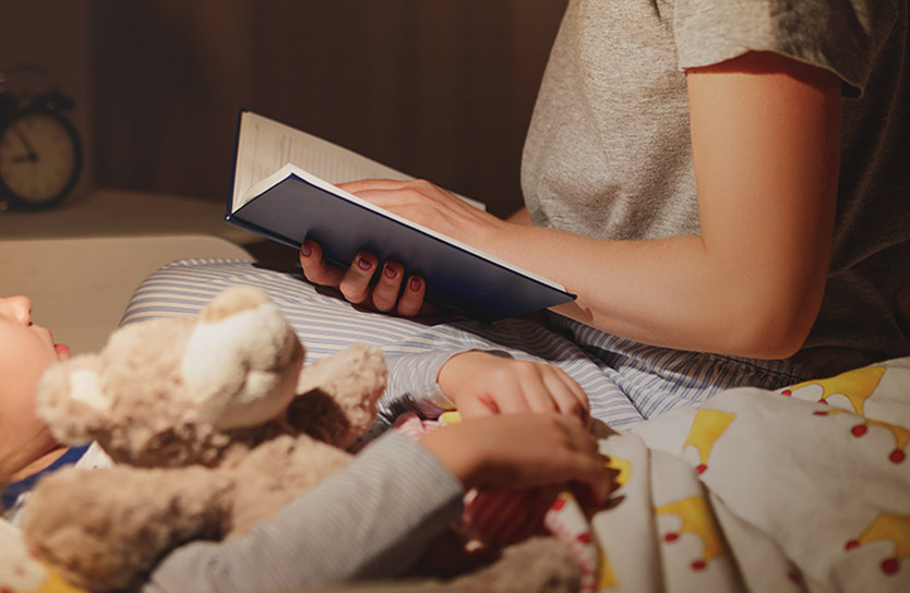 ベッドタイムストーリーを一緒に聞いて寢かしつけ