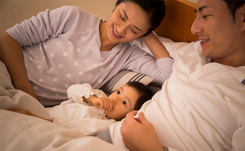 安眠するためには、家族それぞれ個室があった方が靜かに眠れるイメージがありますが、実は一緒に眠ることによって安心する、落ち著くといったメリットもあります。これは、コルチゾールなどのストレスホルモンの分泌を抑え、不安感を和らげるオキシトシンの分泌が増えるためと考えられています。