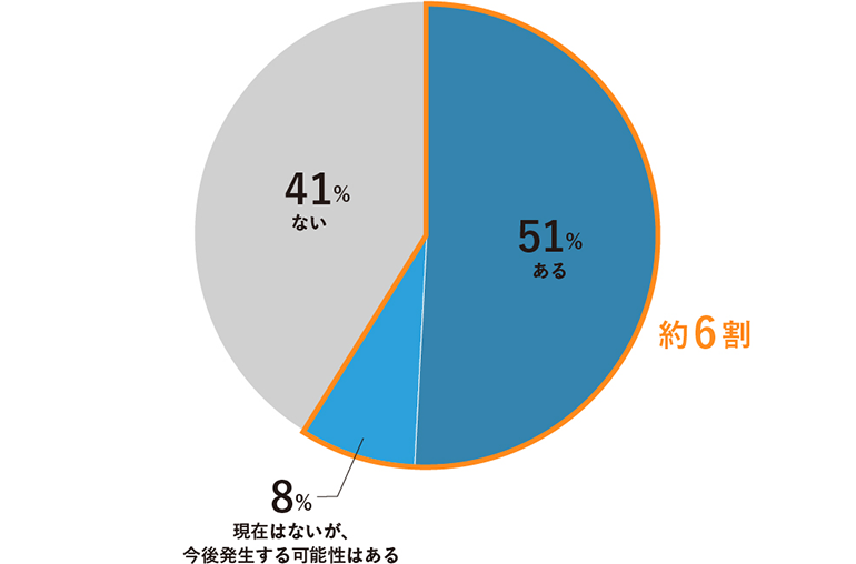 半數以上が上手に使いこなせていない部屋や空間が「ある」(51%)と回答しました。「現在はないが、今後発生する可能性がある」の回答を含めると?約6割にのぼります。
