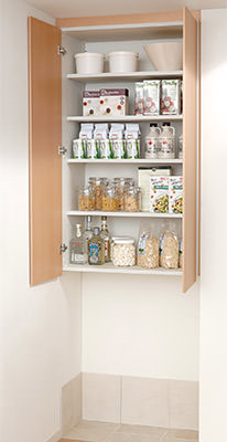 - トイレやケージを設置すると上部がデットスペースになりがちですが、上部はフードやグッズを収納できる棚やキャビネットにすれば空間を無駄なく使うことができ、ニオイの発生源を集約させることにつながります。また、空気の通り道に設計すれば、換気もしやすいですね。