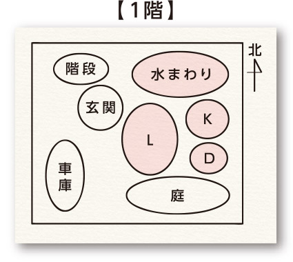 次に建物內(nèi)部のゾーニングですが、ここで一番重要なのが階段の位置。階段は基本的には、できるだけ玄関から離れないように置くのが基本と言えます。次は、リビングやダイニング。暮らしの中心となるスペースを考えるのは難しいことですが、その答えは家族の生活の中にあります。一日を気持ちよくスタートするためにも、朝食は明るいところで食べたいですよね。それなら、ダイニングは朝陽(yáng)を感じられる東側(cè)に設(shè)けるのが良いということになります。リビングは1階全體のつながりを考えると、ダイニングと玄関の間の南面に置くのが良いですね。キッチンは基本的に西側(cè)を避けて、ダイニングの近くにあるのがグッド。水周りの洗面室やトイレは、長(zhǎng)時(shí)間過(guò)ごす場(chǎng)所ではないので、これらを西側(cè)や北側(cè)にゾーニングします。