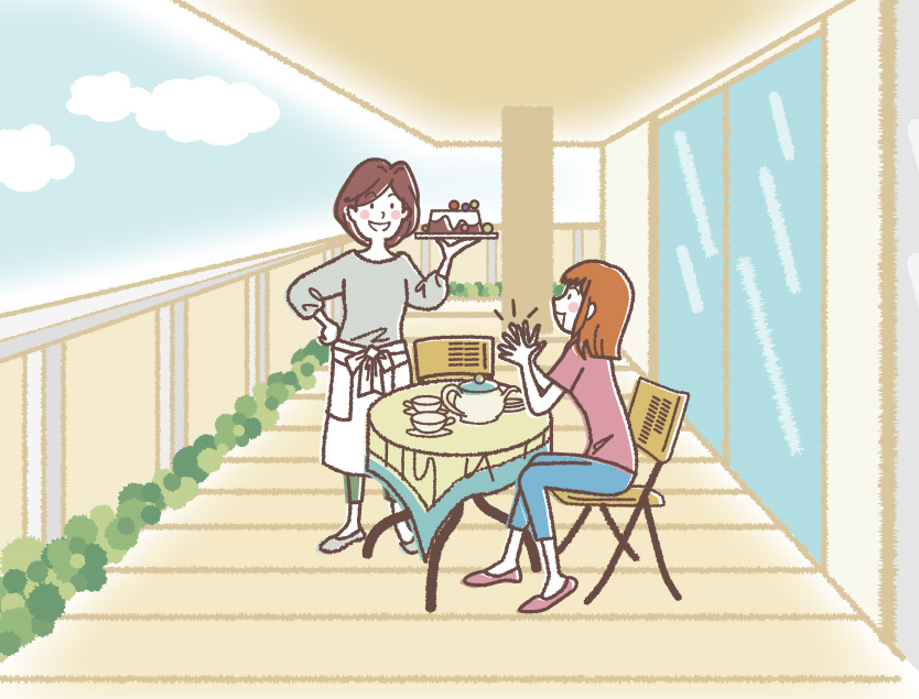 バルコニーの奧行きはとても重要です。よく半間(約91cm)ほどの奧行きのバルコニーを目にしますが、使い勝手が悪く洗濯物を干すにもギリギリになるので、少なくとも半間半(約136cm)の奧行きを確保しましょう。2階リビングにしようとお考えでしたら、奧行き1間(約180cm)以上のバルコニーを設(shè)けると、外で食事やティータイムを楽しむこともできます。深い庇を設(shè)ければ、室內(nèi)のように使える半戸外空間となるのでより快適です。ポイントはバルコニーの手すりを透けない壁にすることで、視線を気にせずに寛ぐことができますので、お?jiǎng)幛幛扦埂?階にキッチンを設(shè)ける場(chǎng)合は、生ゴミを一時(shí)的に出しておけるようなバルコニーがあると便利。これは奧行き半間でも構(gòu)いませんが、なるべく直射日光が當(dāng)たらないように北側(cè)に設(shè)けるようにしましょう。