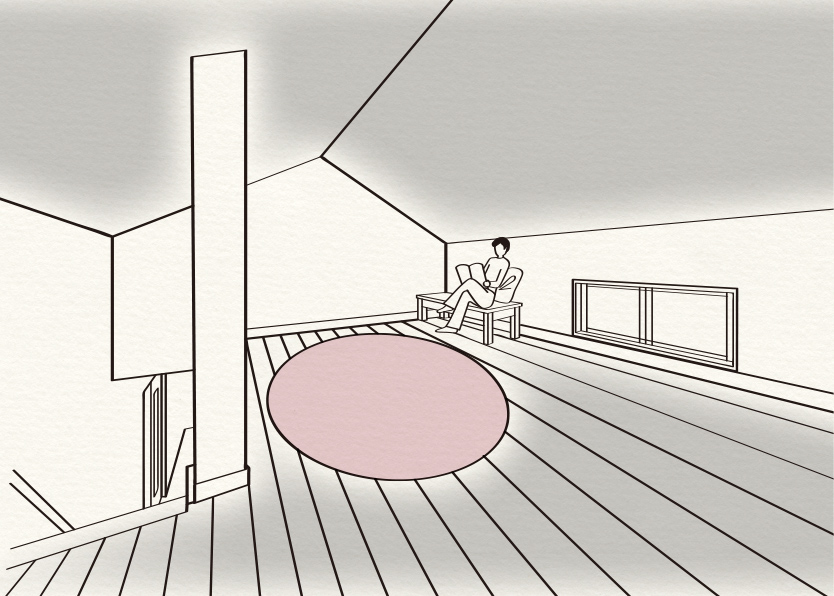 住まいの上手な設計の秘訣は、なるべく「たくさんの居場所を設ける」ことです。たまには誰でも一人になって籠りたい時があると思います。そこで検討してみていただきたいのがロフト(屋根裏部屋)です。一般的には普段使わないモノを収納しておくためのスペースとして設けることが多いのですが、むしろここでは居場所の一つとして想像してみましょう。天井が少し低く斜めになっていて、どこか非日常的で隠れ家のような感じでワクワクするはずです。設計上のポイントはハシゴではなく固定階段にすること。ロフト用に考案されたコンパクトで上りやすい階段もあります。これで、億劫にならずに日常的にロフトが利用できます。またロフトの窓は、溜まった熱気を抜くために必ず開閉できるタイプにすることをお忘れなく。