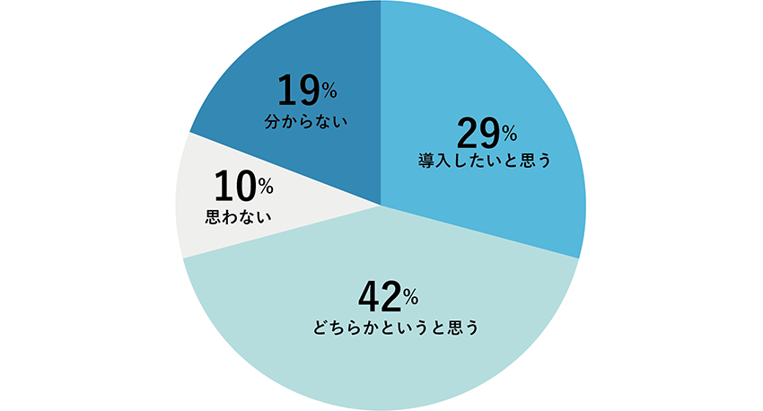 「導入したいと思う」と「どちらかというと思う」を合わせると、71%もの人が導入に前向きであることが分かりました。では「分からない」19%と答えた人は、どのような理由が検討の障害となっているのでしょうか。