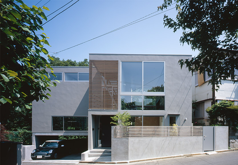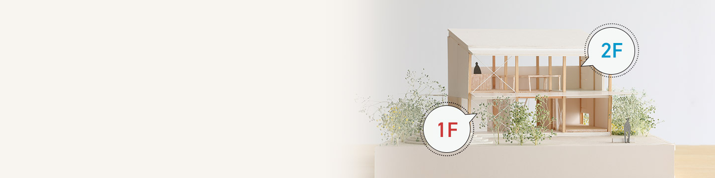 「土地によって條件は違うので一概にはいえませんが、住宅地の多くは都市計畫法の用途地域で第一種?第二種低層住居専用地域に指定されています。これによって建ぺい率や建物の高さが定められ、それらを加味しながら敷地に対して建物の配置を決めていきます。それに加え、「北側斜線制限」という北隣の建物の日照に配慮した規制もあります。これはある高さから勾配をつけることが求められるため、2階の北側に面した空間は天井高に影響を受けやすい。1階と2階を同じ天井高にしてしまうと、時に2階は制限を受けた部分の天井が低すぎて居室として使いにくくなります。そこで、たとえば1階の天井高を抑え、2階に天井の高いリビングを設けることで、法的なルールを守りながら効率よく気持ちの良い空間が生まれるのではないかと思います。また、隣家との距離感、密集地でのプライバシーの確保、駐車場や庭の配置などを考えていくと、2階のリビングはとくに都市部で効率よい住まいを実現しやすいのかもしれません」